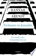 Uno de los mejores estudios sobre el Holocausto, un ensayo de lectura inaplazable para entender lo que sin duda fue la gran tragedia del siglo XX. A partir del juicio que en 1961 se llevó a cabo contra Adolf Eichmann, teniente coronel de las SS y uno de los mayores criminales de la historia, Hannah Arendt estudia en este ensayo las causas que propiciaron el Holocausto, el papel equívoco que jugaron en tal genocidio los consejos judíos, así como la naturaleza y la función de la justicia. La mirada lúcida y penetrante de Arendt desentraña la personalidad del acusado, analiza su contexto social y político y su rigor intachable a la hora de organizar la deportación y el exterminio de las comunidades judías, además de la colaboración o la resistencia en la aplicación de la Solución Final por parte de algunas naciones ocupadas. Reseña: «En vez de defender la causa de su pueblo de manera incondicional, Arendt se puso a reflexionar, investigar y debatir. En palabras de Aristóteles, en vez de limitarse a ser una historiadora , Arendt se convirtió en poeta .» El País